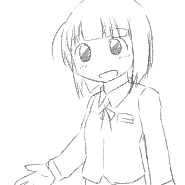ファイル名は「三つ編み眼鏡」なのに、三つ編みも眼鏡も何処かへいっちゃいました。そんな行き当たりばったりなイラストですが、反省会の意味も込めて、途中のも含めて並べてみます。どうもラフが一番かわいいと思っちゃうのですが、この現象は結局のところ技量不足のためだと考えております……。